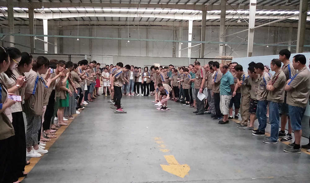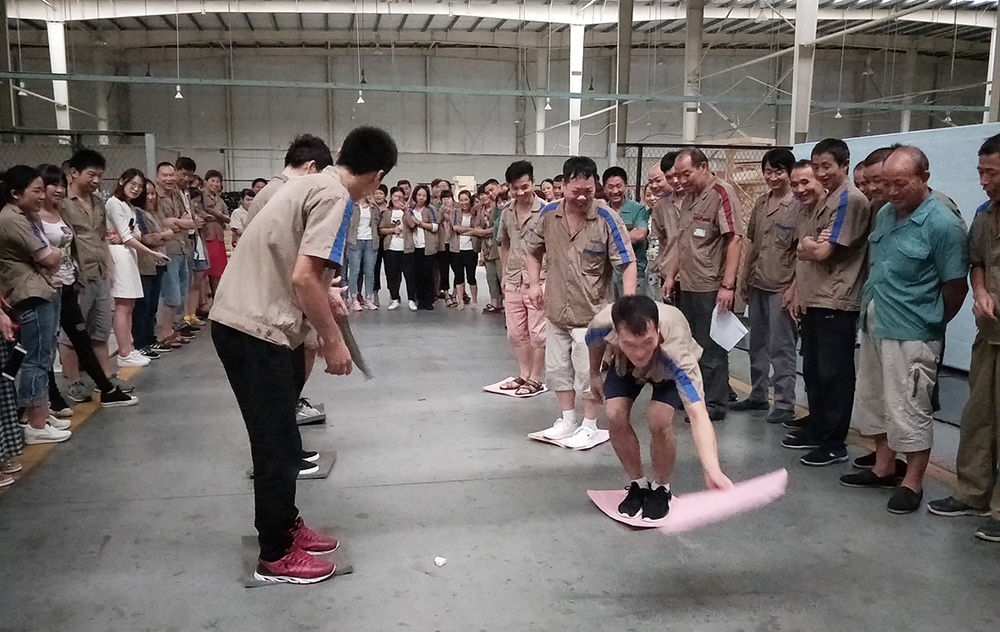 隨著一聲“比賽開始”的口令,大家熱情高漲,隊(duì)員們齊心協(xié)力,奮力拼搏,有些隊(duì)剛開始有點(diǎn)緊張,所走路線成彎曲狀,后來(lái),在大家從旁提醒,順利到達(dá)終點(diǎn)。有些隊(duì)吸取經(jīng)驗(yàn),通過(guò)簡(jiǎn)單的交流和溝通戰(zhàn)略技巧,比較順利。相比而言,后面的組明顯比前面的組速度快。在整個(gè)比賽過(guò)程中,里料車間團(tuán)隊(duì)協(xié)作的能力和靈活的戰(zhàn)術(shù)配合比較好,本著“友誼第一、比賽第二”的精神,經(jīng)過(guò)激烈角逐,里料車間以2分25秒完成了60米“搭橋過(guò)河”獲比賽第一名,包裝車間獲得第二名,技術(shù)部獲得第三名。