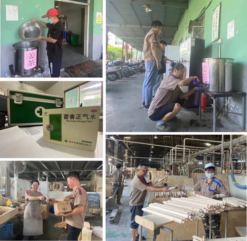 公司在每個(gè)車間辦公室配備防暑藥品,食堂工作人員準(zhǔn)備了姜茶,并且還在下午適時(shí)發(fā)放棒冰。