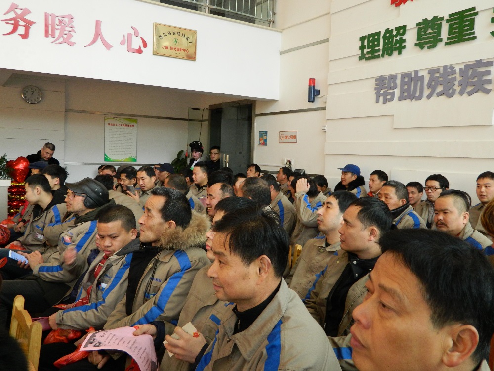 在海寧樂融社工組織的幫助下,2019年1月9日,恒森陽光小康庇護中心舉辦了迎新春年會,邀請長安虹橋越劇團來中心為廣大殘疾職工義演越劇名段,中間穿插游戲互動和興趣抽獎。