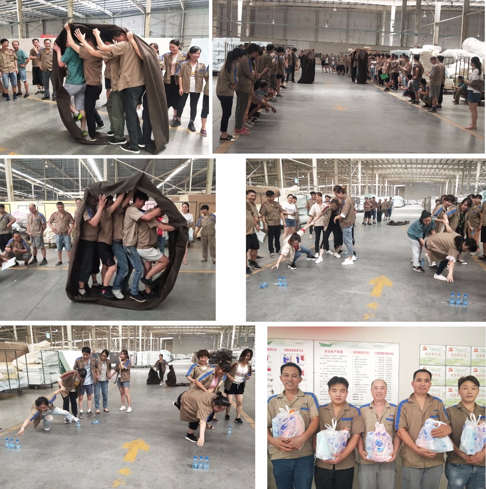 本次比賽共有15支隊伍參賽,有75名員工報名參加,每支隊伍由5名選手組成。活動的細則是:每組的參賽人員需要站到自己的“無敵風火輪”圈內,以哨聲開始向前滾動,快速到達指定的距離,用時最短者為勝,完成后再進行群龍取水比賽活動,在一條直線外的一定距離內,或者在直徑一定的圓圈內放幾個礦泉水瓶。在規定的時間內,不得進入圈內取出礦泉水瓶,而是通過整個團隊的努力利用其他方式取出礦泉水瓶;在取出的過程中,水有任何的灑出任務即失敗且每組5人都要參與取水。隨著一聲“比賽開始”的口令,大家熱情高漲,隊員們齊心協力,奮力拼搏,有些隊一起喊著口號“一二、一二”,步法穩健整齊有力,(我想他們在工作中也是這樣有操作技巧,齊心協力)順利到達終點,接著又快步在“群龍取水”活動中,靠大家團隊精神,敏捷有力的把水順利取出。一旁的參加隊伍吸取經驗,認真研究戰賽技巧,通過激烈角逐后,成品車間1組5名代表以較好的協作能力和團隊靈活的戰略戰術在比賽中獲得了第一名。