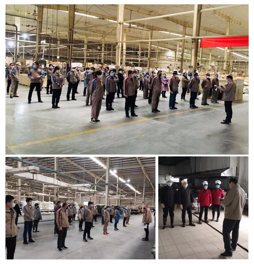 復工復產,安全第一。各子公司除了開展安全消防檢查外,主抓節后安全培訓,確保安全生產萬無一失。同時開展疫情宣傳,做好個人防護和公共衛生。崗前培訓人員站位整齊、保持間隔。