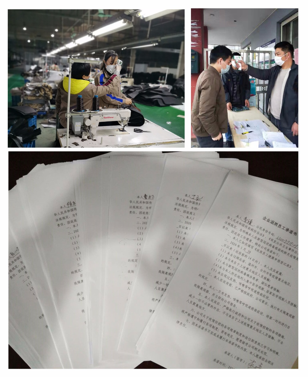 上班第一天,與每位員工簽訂《企業返崗員工承諾書》,明確責任。同時要求員工在崗時配戴口罩,勤洗手,少聚集,配合公司做好體溫檢測等。
