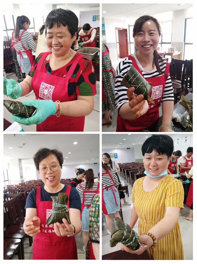 在包粽子過程中,員工們交流切磋,相互學習,取長補短,不亦樂乎!不會包的,拿著粽葉向會包的請教。手藝好的,得意地把包好的粽子拎起來向大家展示、留影,當然也有員工在師傅指導下對包成的“處女”粽喜笑顏開。大家紛紛稱贊,贊得真心、被贊得開心,活動現場暖意濃濃,粽葉芳香,不僅讓大家感受到了中國傳統文化的魅力,也為端午節獻上了一份濃濃的喜氣。